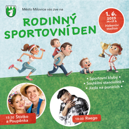 V neděli 1.6.2025, u příležitosti Dne dětí, chystá město od 14:00 Rodinný sportovní den. Na místě se budete moci seznámit s tím, co si pro Vaše děti přichystaly jednotlivé spolky působící v našem městě, což některým může pomoci rozhodnout se, na jaký kroužek dítě po letních prázdninách přihlásí. Těšit se můžete na tradiční plnění úkolů (včetně vyzkoušení např. lezecké stěny) a letos i jízdu na ponících. Na místě budou i stánky s občerstvením.